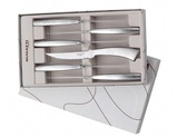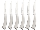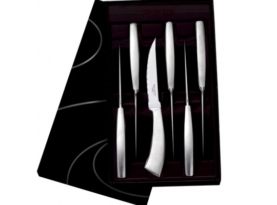 Glæsilegir alvöru steikarhnífar, sex saman í fallegri gjafaöskju. "Monoblock" hönnun, þar sem blað á hnífi og handfang er steypt í einu lagi. Framleitt úr hágæða ryðfríu stáli með háu kolefnis innihaldi (x40CR14). Sérstök hitameðferð gefur síðan blaðinu þá hörku sem ábyrgist réttan skurð og góða endingu hnífsins. Stærð blaðs er 120mm.